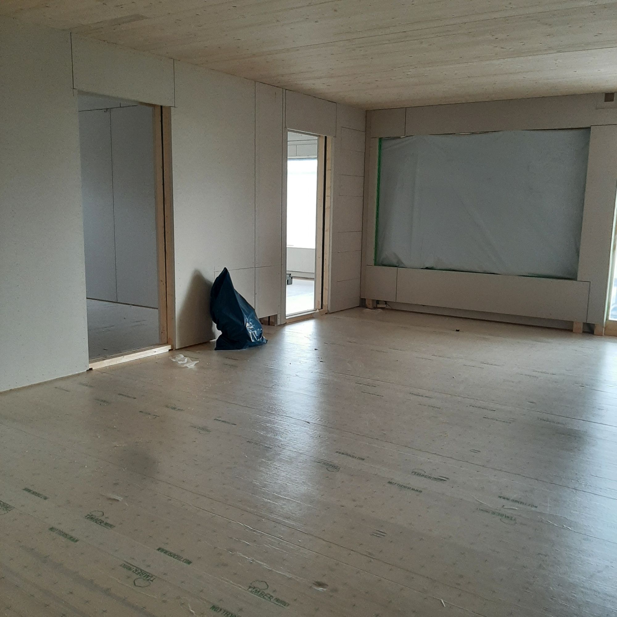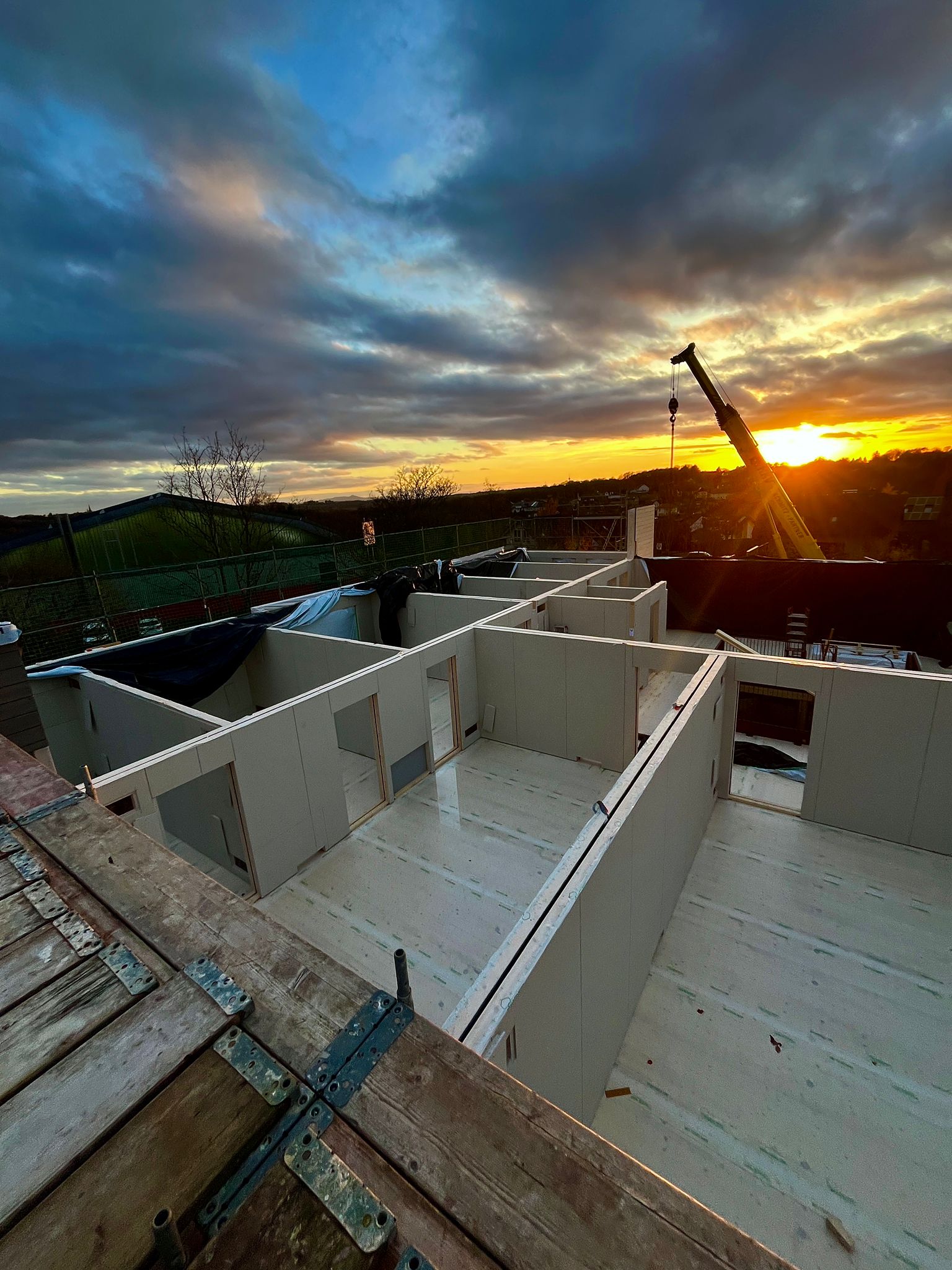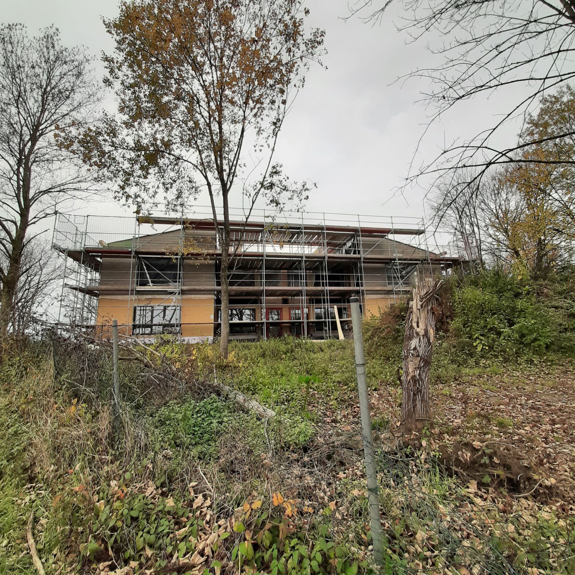 Am 03.11.25 wurden die ersten Wandelemente für das Erdgeschoss durch die Firma Stommel Haus GmbH montiert: